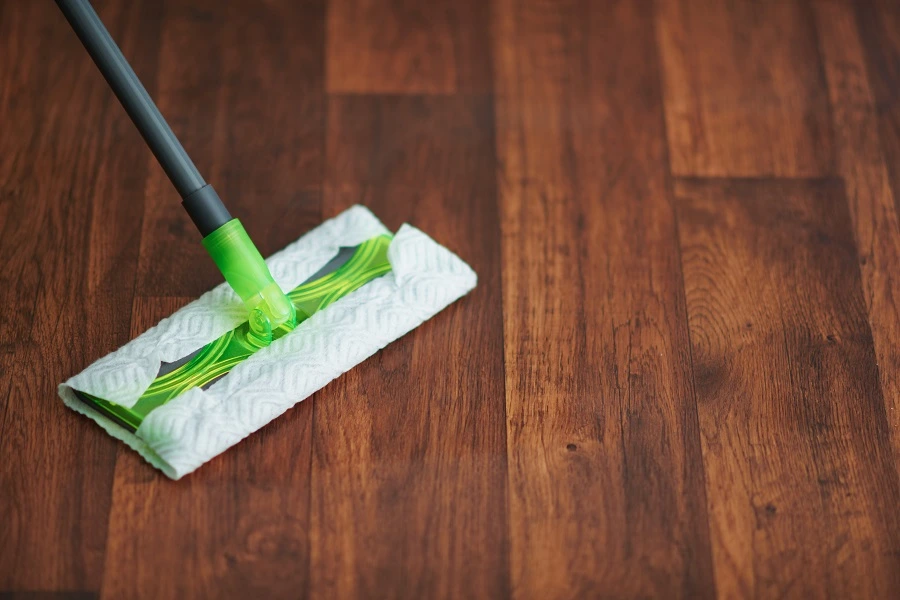 The floor type determines what you can safely use. Moisture is the shared concern across all of them, so avoid over-wetting any surface during the cleaning process.